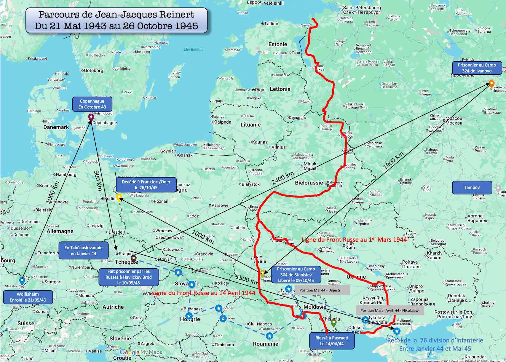 Carte du parcours de Jean-Jacques Reinert établie par Patrick Hoffmann