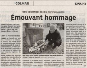 Article paru dans les DNA-Colmar du 12.7.18 transmis par Claude Herold