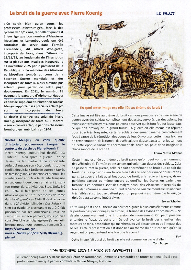« Le bruit de la guerre avec Pierre Koenig ». Article paru dans « La Voix des Appren­tis » n°46, décembre 2025