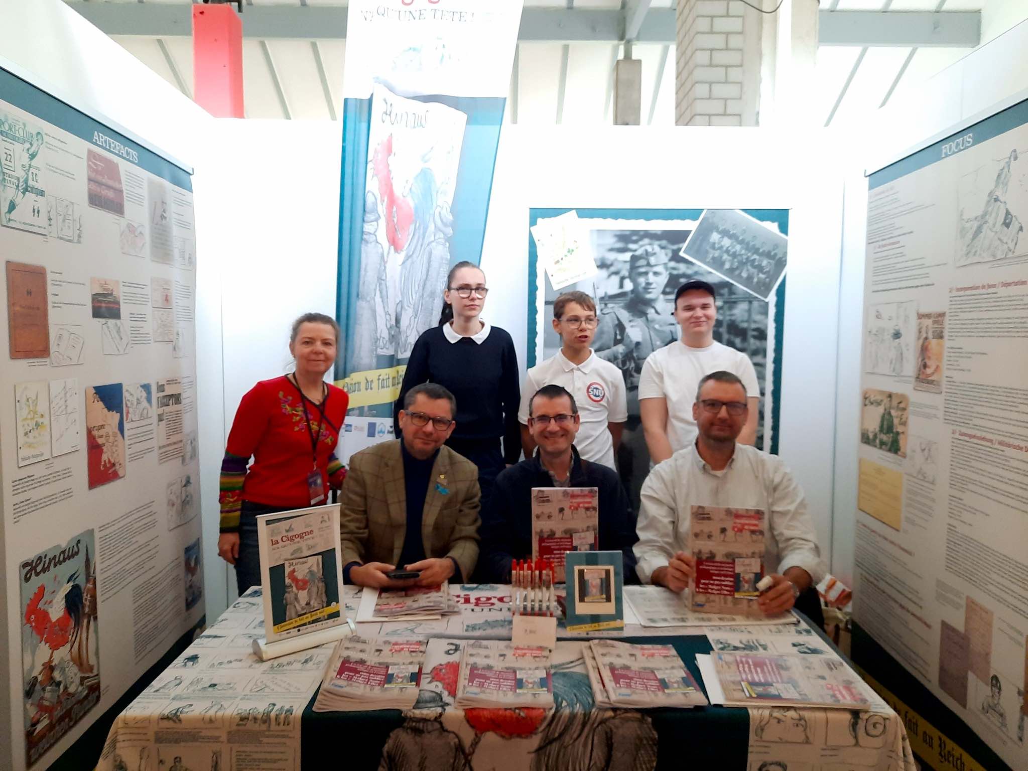 Dans le cadre du 40e anni­ver­saire du Festi­val Bédé­ciné qui s’est tenu à l’Es­pace 110 d’Ill­zach, l’ex­po­si­tion bilingue « La Cigogne n’a qu’une tête » a été présen­tée au public avec le soutien de jeunes du SNU et de leur profes­seur de l’EREA d’Ill­kirch-Graf­fens­ta­den. Cet événe­ment a aussi été marqué par la paru­tion du 8e numéro de la série « Compren­dre… l’in­cor­po­ra­tion de force » éditée par « L’Ami hebdo ». Consa­cré à la « Cigogne », ce maga­zine excep­tion­nel fédère les signa­tures d’his­to­riens, d’en­sei­gnants, de jour­na­listes et d’ac­teurs de la Mémoire.