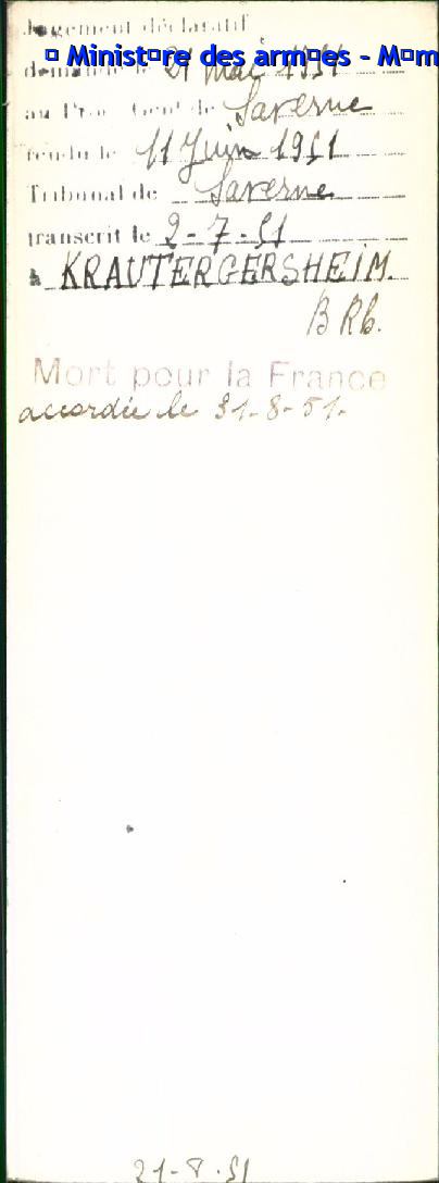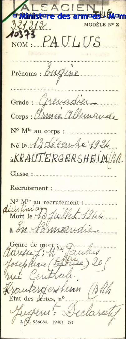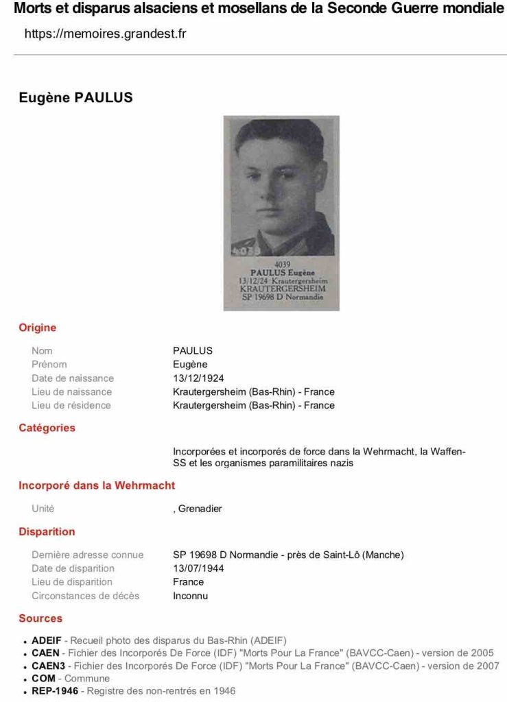 Eugène Paulus, de Krautergersheim, appartenait au Gren. Rgt. 982, I. Btl. (FPN 15241, 19698)