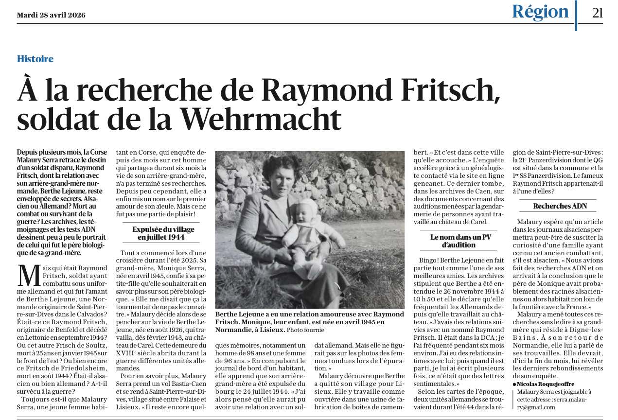 Article paru dans les DNA du 28.4.26 aima­ble­ment trans­mis par Freddy Meyer