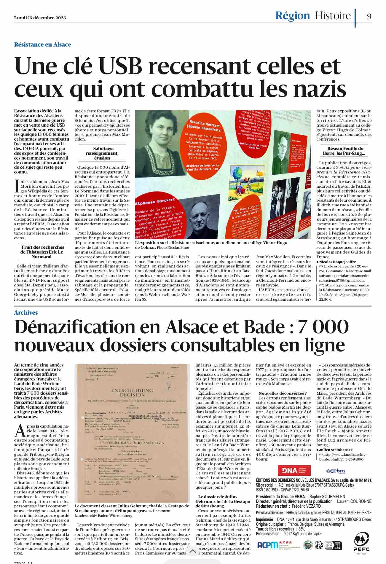 Articles parus dans les DNA du 15.12.2025 transmis par Freddy Meyer