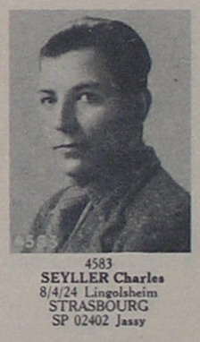 Non trouvé dans la base VDK, pour Mémoire des Hommes: SEYLLER Charles René Henri Né le 8/4/1924 à Lingolsheim (67 – Bas-Rhin, France) habitant Strasbourg Porté disparu qlors qu’il se trouvait près de Jassy le 9/8/1944 et déclaré Mort pour la France le 9/8/1944 près de Jassy/Iași (Roumanie) : sans doute dans le secteur de Delacău 6km au sud de Grigoriopol, 36km à l’est de Kischinew/Chișinău et 33km au nord de Tighina/Bender en Moldavie actuelle. Numéro matricule : 911 Instruit au sein de l’Infanterie-Pionier-Ersatz-Kompanie 56 (FPN 23165 D) de l’Infanterie-Ersatz-Regiment 56 stationné à Dresden puis à Jaroslau/Jarosław dans les Carpates polonaises. Le secteur postal FPN 02402 mentionné sur ses fiches DRK et MdH correspond à l’état-major régimentaire ou Regimentsstab du Grenadier-Regiment 685 de la 336. Infanterie-Division. La 336. Infanterie-Division est créée le 15 décembre 1940 dans la région de Bielefeld et son entraînement complété au camp d’entraînement de Mons en Belgique. En juin 1941, la 336. Infanterie-Division est transférée en France comme force d’occupation dans la région du Havre-Fécamp-Yvetot. En mai 1942, la 336. Infanterie-Division est affectée à la 6. Armee au sein du groupe d’armées Sud/Heeresgruppe Süd. Depuis Charkow/Kharkov, la 336. Infanterie-Division participe à l’avancée de la 6. Armee à travers les rivières de Donets et d’Oskol jusqu’au vaste bassin du Don à l’ouest de Stalingrad. Après le début de l’offensive soviétique visant à encercler la 6. Armee dans Stalingrad, la 336. Infanterie-Division reste en dehors de la Poche de Stalingrad et combat sur le Tschir/Tchir, un affluent de la rive droite du Don et seul son Pionier-Bataillon 336 est transféré à Stalingrad en octobre 1942 et détruit en janvier 1943 ; pour le remplacer, un nouveau Pionier-Bataillon 336 est formé durant l’hiver 1942-1943. En janvier 1943, la 336. Infanterie-Division combat sur la rive ouest du fleuve Donets dans le secteur est de Verkhnekundryuchenskaya 50km à l’est de Schachty/Chakhty, ville située 64km au nord-est de Rostov sur le Don En mars 1943, la 336. Infanterie-Division se replie via Schachty/Chakhty jusqu’à la rivière Mius au nord de Taganrog, ville située 61km à l’ouest de Rostov sur le Don. La 336. Infanterie-Division combat alors à l’est de la voie ferrée sur le fleuve Mius dans le secteur d’Uspenskajaj/Uspenka 55km au nord de Taganrog à la frontière entre Russie et Ukraine. En avril 1943, elle combat toujours sur la rive occidentale du Mius 15km plus au sud dans le secteur sud d’Alekseyevka pour reprendre ses positions au sud d’Uspenskaja/Uspenka de mai à août 1943. En septembre 1943, la 336. Infanterie-Division est encerclée près d’Ouspenskaïa/Uspenskajaj/Uspenka. La 336. Infanterie-Division réussit à briser l’encerclement au prix de lourdes pertes et ses éléments résiduels retraitent 330km au sud ouest sous forme d’une Kampfgruppe 336 pour rejoindre le secteur sud de Melitopol en Ukraine en octobre 1943. Après de coûteuses batailles de percée, la 336. Infanterie-Division se replie 270km plus à l’ouest via Melitopol vers la Crimée, où elle est déployée aux abords nord de la Crimée dans le secteur sud d’Armyansk. Le Grenadier-Regiment 685 est anéanti à Sewastopol/Sébastopol en Crimée, Ukraine en mai 1944. Le Grenadier-Regiment 685 est recréé en juillet 1944 à partir des restes de la 336. Infanterie-Division et rattaché à la 294. Infanterie-Division sur la rive occidentale du Dniestr/Nistru dans le secteur de Delacău 6km au sud de Grigoriopol, 36km à l’est de Kischinew/Chișinău et 33km au nord de Tighina/Bender en Moldavie actuelle. En début août 1944, la 294. Infanterie-Division combat toujours sur la rive occidentale du Dniestr/Nistru dans le secteur de Delacău 6km au sud de Grigoriopol, 36km à l’est de Kischinew/Chișinău et 33km au nord de Tighina/Bender en Moldavie actuelle.