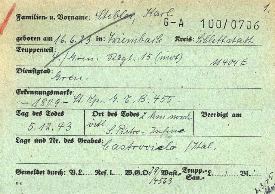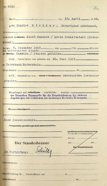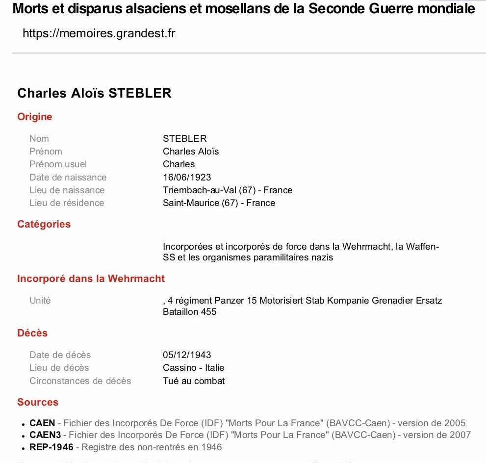 Grenadier/Soldat de 2e classe STEBLER Charles Aloïs